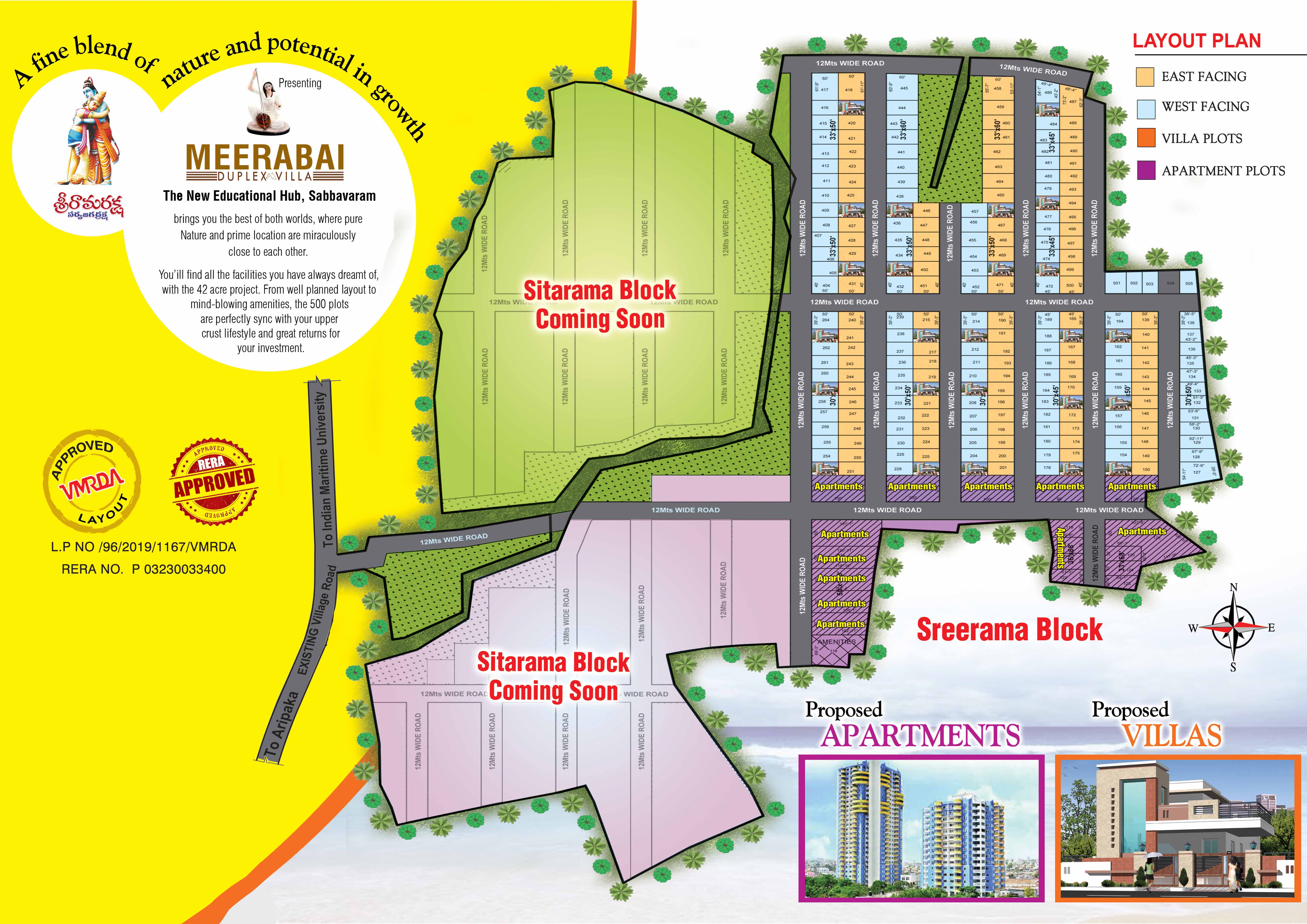 Meerabai Duplex Villas and Open Plots. We are excited to announce our new venture in Sabbavaram, spanning 42 acres with all necessary government approvals. Notably, renowned spiritual guru Brahmashri Chaganti Koteswara Rao Garu owns a plot here, along with several other celebrities. This housing and open-plot venture is located near Andhra Pradesh's educational hub, with institutions like the Law University, Marine University and Petroleum University just a short distance away.